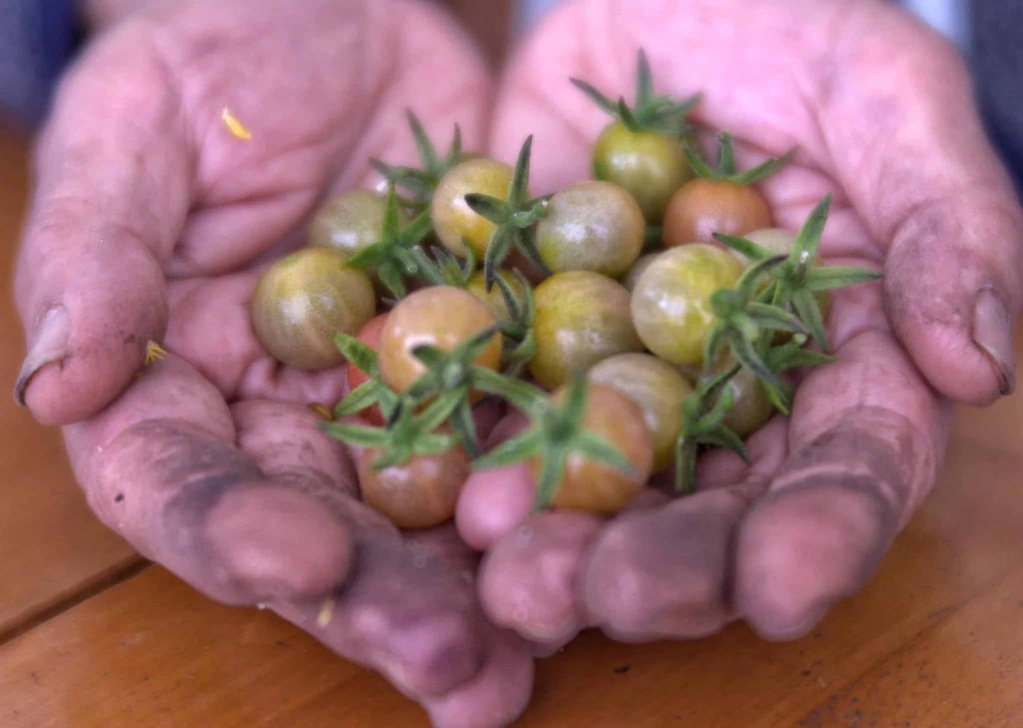 Using the Lensbaby 56 lens, I focused on the cracked lines and blackened fingernails, mixing them with the softness created by the shallow depth of field, to capture her joy over the new harvest from her garden.